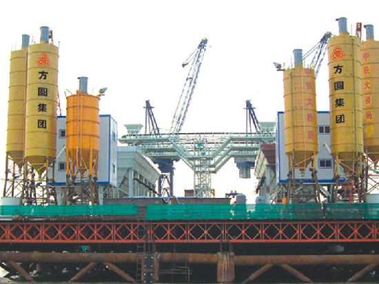 STP150水上平臺(tái)混凝土攪拌站—大橋局承建鄱陽(yáng)湖鐵路大橋等水上工程STP150 Rig-mounted Concrete Mixing Plant—Railway Bridge cross Poyang lake